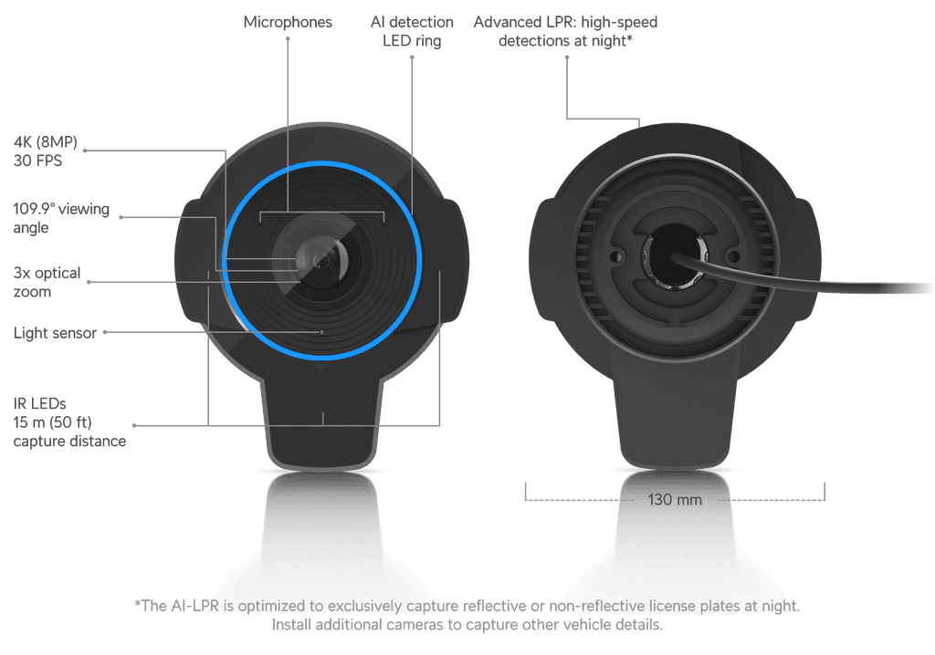 Ubiquiti UniFi Protect Specialized 4K Camera,Black,3x Optical Zoom&Long-range IR Night Vision Optimized,Recognize License Plates On Vehicle Up 90 km/h