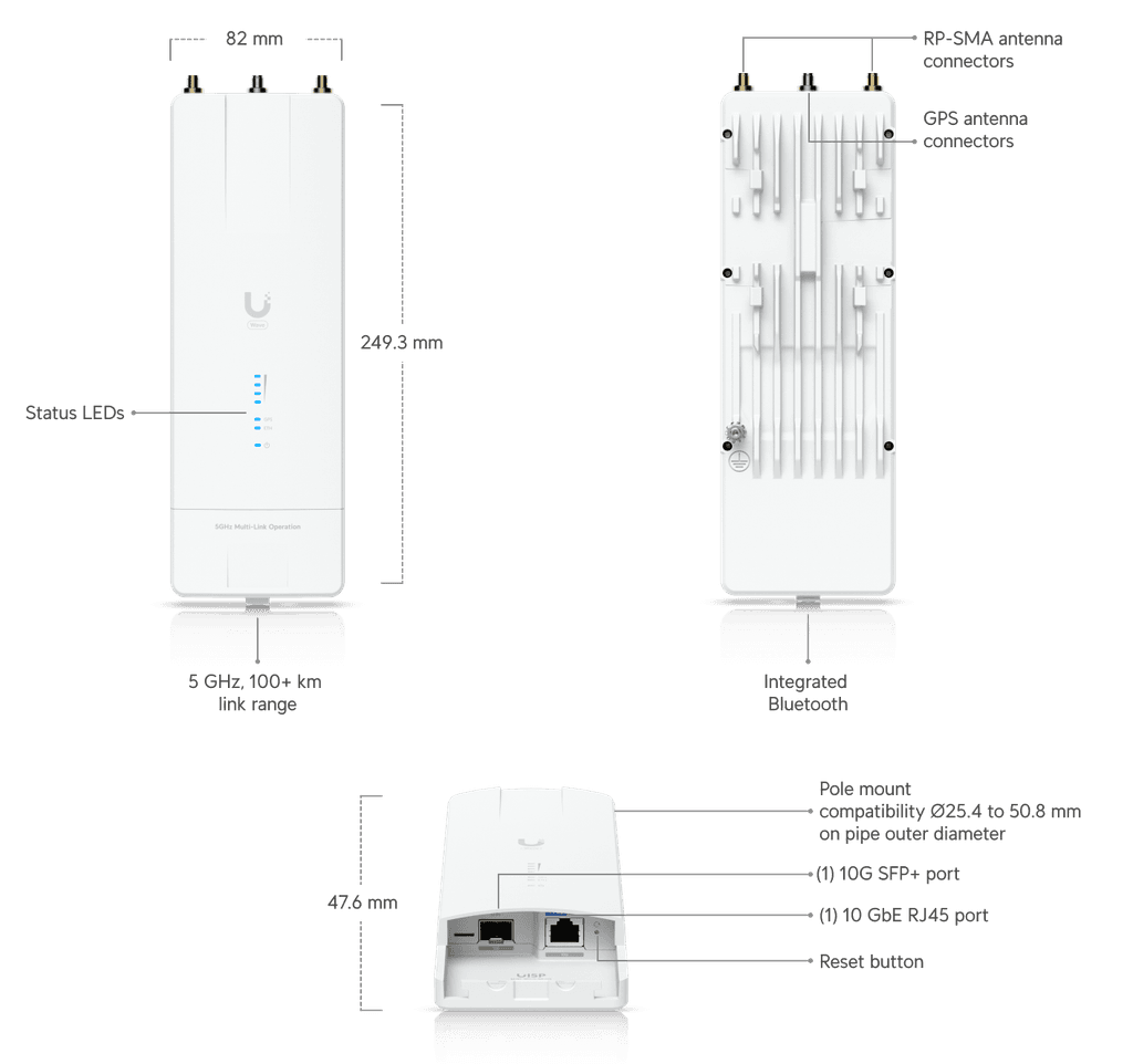 •Compatible with airMAX antenna, airFiber X antenna, UISP Dish and UISP Horn