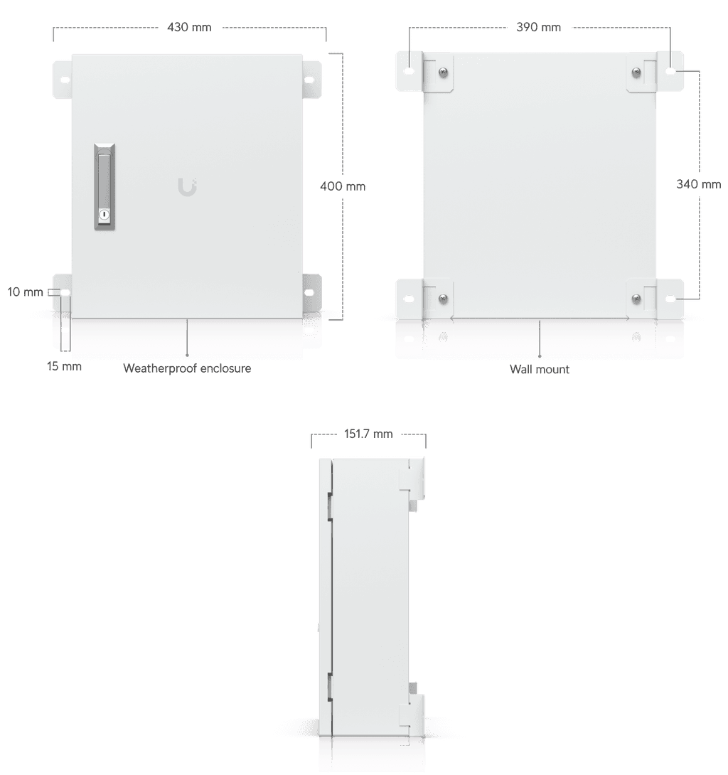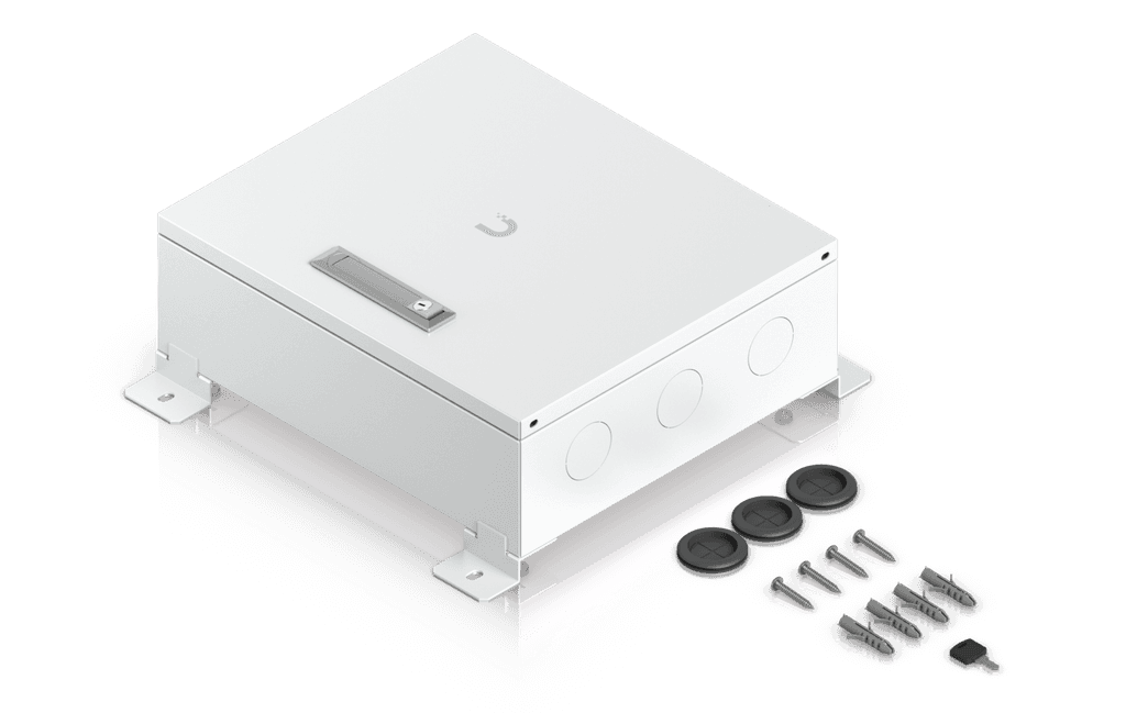 An indoor/outdoor enclosure designed for UniFi Access Hubs, switches, and accessories.