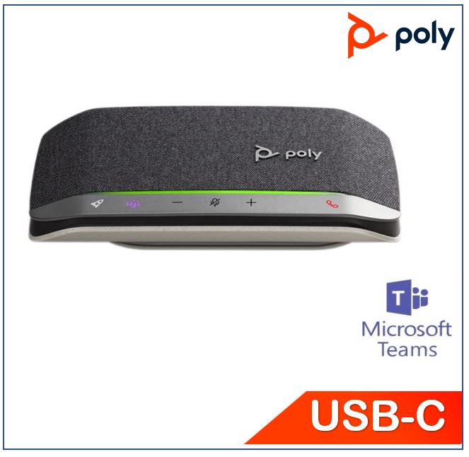 Plantronics/Poly Sync20, Teams, Personal USB-C/BT Smart Speakerphone, Multi-Mics Array, Bass Reflex System, Dust & Water Resistance, Status Light
