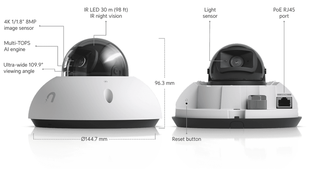 Ubiquiti G6 Dome,White,All-weather,Vandal-proof 4K PoE Camera,1/1.8 8MP Image Sensor,Multi-TOPS AI Engine,Long-range IR Night Visio,Deal Reg Available